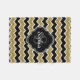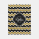 Stylish, trendy black, white, and faux gold glitter chevron zigzag pattern with a quatrefoil label frame on top featuring a customisable monogram initial letter and name template.