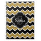 Stylish, trendy black, white, and faux gold glitter chevron zigzag pattern with a quatrefoil label frame on top featuring a customisable monogram initial letter and name template.