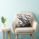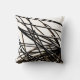 Simple glamourous throw pillow features an elegant abstract linear composition in black and gold on a white background. Inspired by tall dune grasses, this throw pillow is reversible. Black and gold artistic design on front; solid black on back.