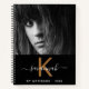 A chic black background. Personalise and add your own photo, a name, monogram letter and a year. The name is written in white with a large modern hand lettered style script with swashes. Golden monogram letter. For school, work as a sketchbook, diary and journalling. To keep the swashes only delete the sample name, leave the spaces or emoji's in front and after the name