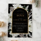Transform your celebration into an exquisite winter soirée with this Elegant Black and White Gold Winter Evergreen Bridal Shower Invitation on a dramatic black background. The lush white poinsettias, frosted evergreens, and rustic pinecones stand out vividly against the deep black backdrop, creating a stunning interplay of modern elegance and timeless charm. The gold arched frame adds a luminous, sophisticated touch, perfect for setting the tone of a luxurious and memorable event.