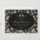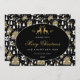 Cute black, white and gold holiday card featuring a winter pattern of reindeer, polar bears, squirrels, houses and trees. A beautiful script font is used to add more festive look to this greeting card. Easily personalise this non photo holiday card online.
