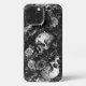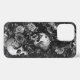 Black & White Gothic Skulls iPhone 13 Pro Max Case. © Dark Heart Desires. This Gothic iPhone 13 pro max case has a black and white design of skulls and roses on it.