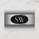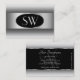 Black White Gradient Monogram Silver Oval Frame Business Card