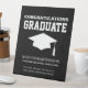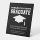 Modern black and white graduation party tabletop sign with text "Congratulations Graduate", and a graduation cap design. Personalise with the name and graduation year of your graduate. Add a short personal message to your graduate at the bottom. Contact me for assistance with your customisations or to request additional matching or coordinating Zazzle products for your graduation.