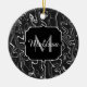 Black white gray damascus abstract swirls Monogram Ceramic Ornament