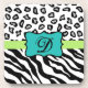 Black White Green & Turquoise Zebra & Cheetah Skin Coaster