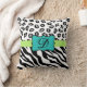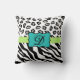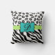 Black White Green & Turquoise Zebra & Cheetah Skin Cushion