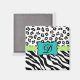 You will love this stylish and fun monogram magnet. Colourful zebra stripes and cheetah skins for graphic design is one of the hottest art and design trends, and is extremely popular from fashion to home decor. This sophisticated black and white with lime green and turquoise teal blue zebra and cheetah print collection is one of several colour combinations available. A turquoise emblem creates a personalisation area. This is fully customisable to personalise to include your name, monogram initials, business name or other words to convey your message. Go wild with these wild skins designs!