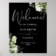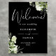 This elegant black and white greenery leaves wedding welcome sign can be personalised with your information in chic typography. Designed by Thisisnotme©