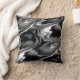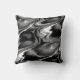 Modern throw pillow features a stylish organic abstract design in shades of black, white and grey with silver grey accents. A decorative throw pillow that is bound to add a sense of fashionable style to any modern room's decor.