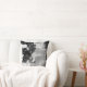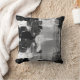 Modern throw pillow features an artistic abstract design in black white and grey colour palette. An artistic abstract design features shades of grey and black on a white background. The lighter grey and black design elements compliment the white background.