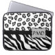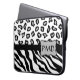 Black, White & Grey Zebra & Cheetah Skin Monogram Laptop Sleeve