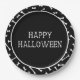 Black & White Halloween Bones & Bats Pattern Paper Plate