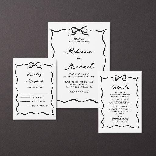Black & White Hand Drawn Bow Wedding Table Number