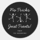Black and White Hand Drawn Skeleton No Tricks Just Treats Halloween Sticker.