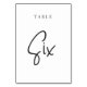 Simple and chic table number cards in classic black and white make an elegant statement at your wedding or event. Design features "table [number]" in an eyecatching mix of classic serif and handwritten script lettering. Design repeats on both sides. Individually numbered cards sold separately; order each table number individually from our collection.