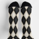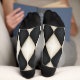 These eye-catching socks have an dramatic Harlequin pattern in black and antique white with delicate shading and vintage charm.