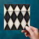 This elegant envelope has a large monogram on a background of a black and antique white Harlequin pattern. A trompe l'oeil effect makes the monogram pop and appear 3-dimensional.