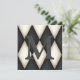 This elegant design has a large monogram on a background of a black and antique white Harlequin pattern. A trompe l'oeil effect makes the monogram pop and appear 3-dimensional. The back has an aged parchment texture and can be Customised with a details about your special occasion.