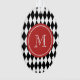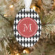Black White Harlequin Pattern, Red Monogram Ornament