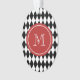 This trendy, mod, black and white harlequin diamond pattern is a perfect background for a red and white circle tag with your initial on it in white text in an elegant font. GraphicsByMimi© Personalise this fun, bold, modern yet retro black chequered pattern design with your monogram, text, initial or name. Use the template field or use the "customise it" option for a full edit menu. A classic, traditional style emerging as a new fashion trend. Other colours available.