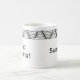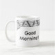 This personalised latte mug is a stylish and unique creation that combines simplicity with a touch of artistry. The design revolves around a stunning Black and White Heat Wave Border that encircles the mug's exterior, adding an elegant and modern flair. Good Morning!