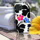 Modern floral Smartphone case with black and white floral images. Among the black flowers are two smaller hibiscus blooms in bright pink and blue. A contemporary design for many generations of iPhone or Galaxy.