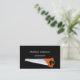 A black background. Decorated with a saw. Personalise and add your business name and a text on front. White text.