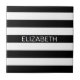 Black White Horizontal Preppy Stripe Name Monogram Ceramic Tile