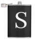 Black & White Initial Letter Monogrammed Plain Hip Flask