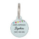 I looked through a lot of pet stores and web sites then I saw Zazzle and a tag with guitars in the background so we added his name and photo o nether front and our phone numbers on the back. It was beautiful and unique just perfect