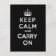 Black White Keep Calm and Carry On Postcard