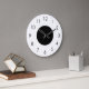 A simple wall clock with a white background and large black numbers and a black face with a thin white outline. Click Customise It to add your custom text, change background colours, resize elements and more.