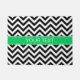 Black and White Large Chevron Zig Zag Pattern, Emerald Green Ribbon Name Monogram Label