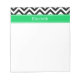 Black and White Large Chevron Zig Zag Pattern, Emerald Green Ribbon Name Monogram Label