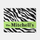 Black White Lime Green Zebra Skin Name Personalise Doormat