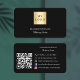 Black background. Personalise and add your business logo, name, title and contact information. Add your website url/link to the Qr code. With Facebook and Instagram icons. White text.