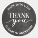 An elegant black and white made with love sticker with a black paper texture background. Designed for you by Blackberry Boulevard.