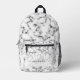 Black white marble sparkle bling Monogram Printed Backpack. Personalise accessory bag with your name. Elegant black and white marble texture. *photo of sparkles, not actual glitter!