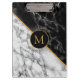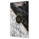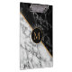 Black White Marble Stone Modern Monogram Clipboard