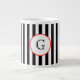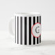Black White Medium Stripe Red White Monogram Label Large Coffee Mug
