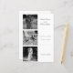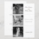 Introduce your wedding day with this sophisticated and heartfelt photo collage Wedding menu. This design features a contemporary layout that blends the elegance of classic wedding stationery with the modern touch of personal photography. The left panel showcases three carefully arranged photo slots, allowing couples to display meaningful and cherished moments. The right panel maintains a minimalistic and elegant design for text, with names in a delicate script font and essential details in a sleek, serif typeface.