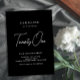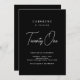 This chic and modern birthday invitation features a sleek black background with stylish white typography. The mix of bold serif and handwritten script fonts highlights the celebrant’s age in a classy, eye-catching way. Perfect for sophisticated birthday parties or milestone celebrations, this design exudes elegance and simplicity while maintaining a timeless look.