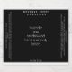 An elegant minimalist waterproof label for handmade cosmetics products. This label features a black background with white text and white border and has space for your business name, product name, product description and instructions, and ingredients list.