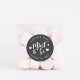 Punny wedding favour stickers feature "mint to be" in white hand lettered script accented with hearts, on a soft ash black background. Personalise with your names and wedding date.