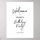 Welcome your guest with this modern birthday welcome poster. This sign features a simple script "Welcome to Birthday Party" in black & white colour theme. You can customise the name and the date. Matching invitations and party supplies are available at my shop BaraBomDesign.