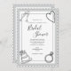 Fun modern black & white design bridal shower invitation with hand drawn wedding graphics in each corner. Perfectly framed with a white scalloped edge with black outline. Coordinating fonts add to the beauty of this design.