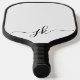 Modern personalised custom colour pickleball paddle featuring a monogram shown in an editable stylish script name initials. For different paddle options, choose from Black, Tan or White edging and grip colours on the ordering page. Easy to customise. Get yours today!