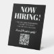 Customise this Black & White Modern QR Code Now Hiring Pedestal Sign with your URL and text.